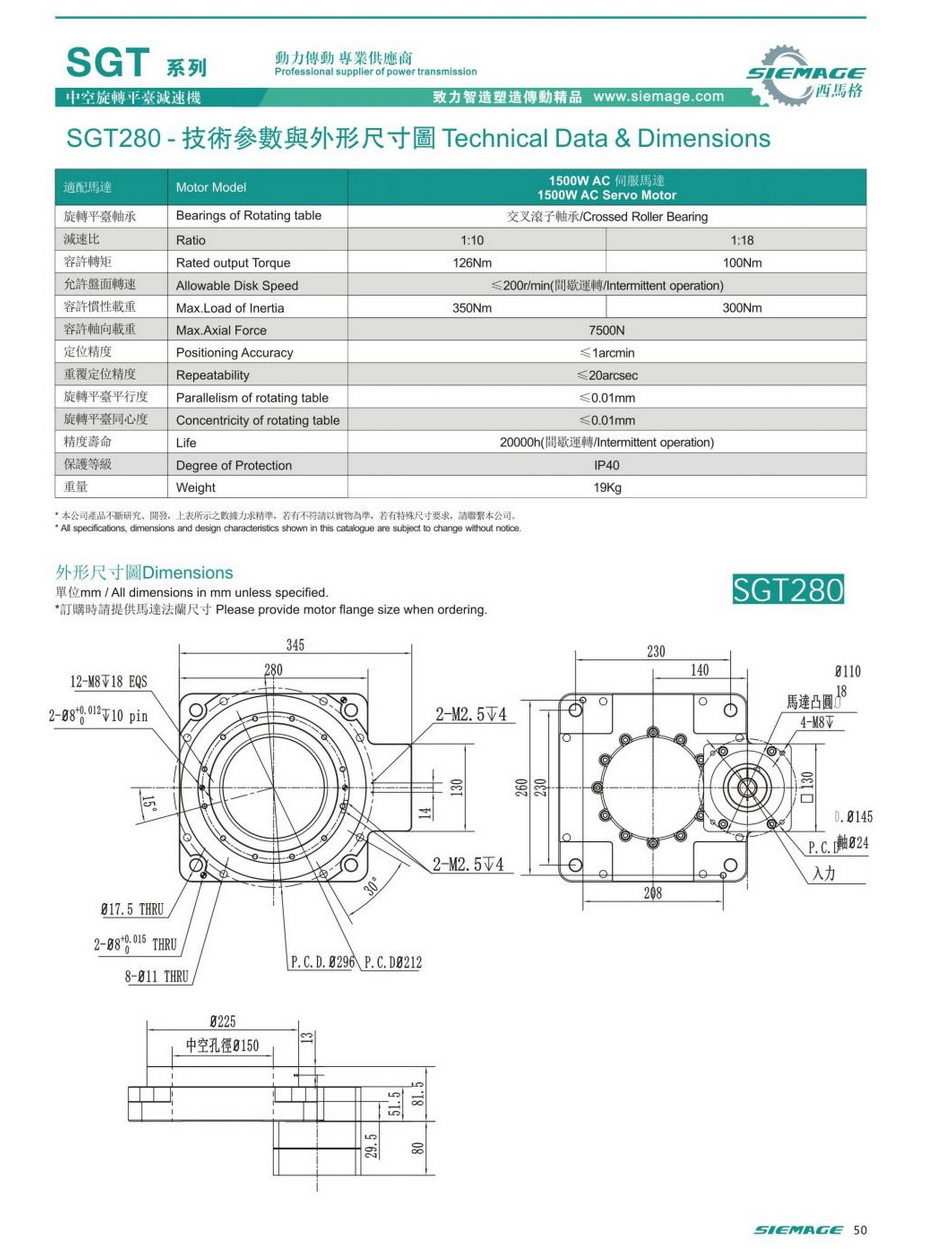 中空平台减速机SGT280,siemage中空平台减速机可配各品牌1500W伺服电机,伺服马达,各厂家86型步进马达,110步进电机。减速比有1:10,1:18等。